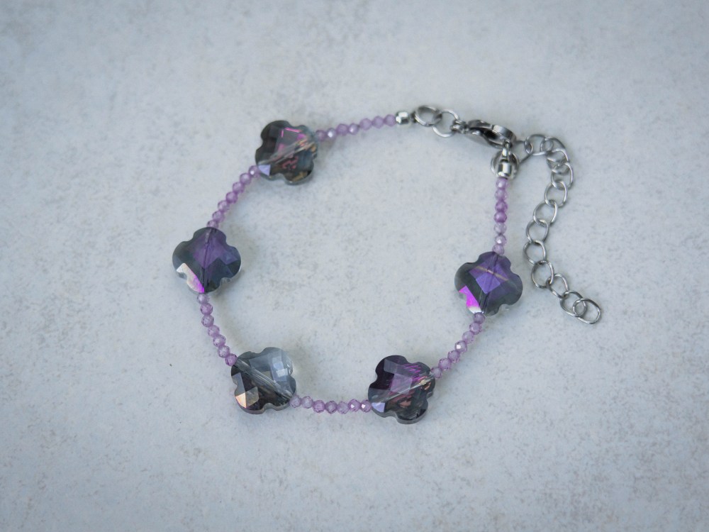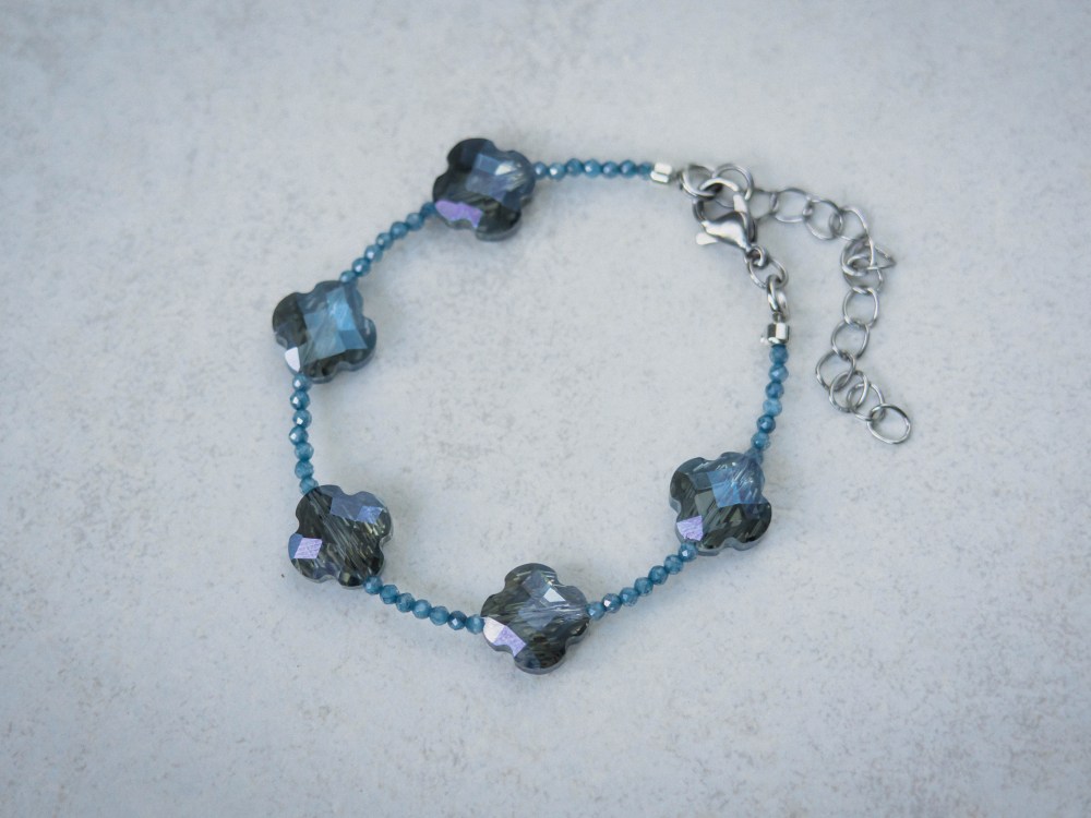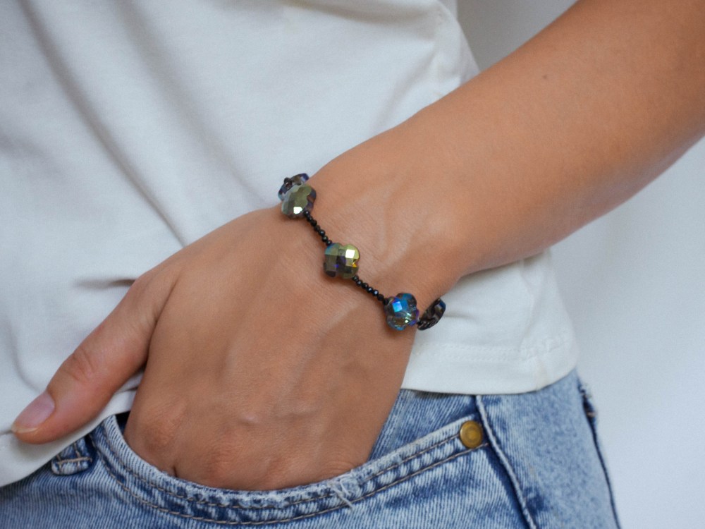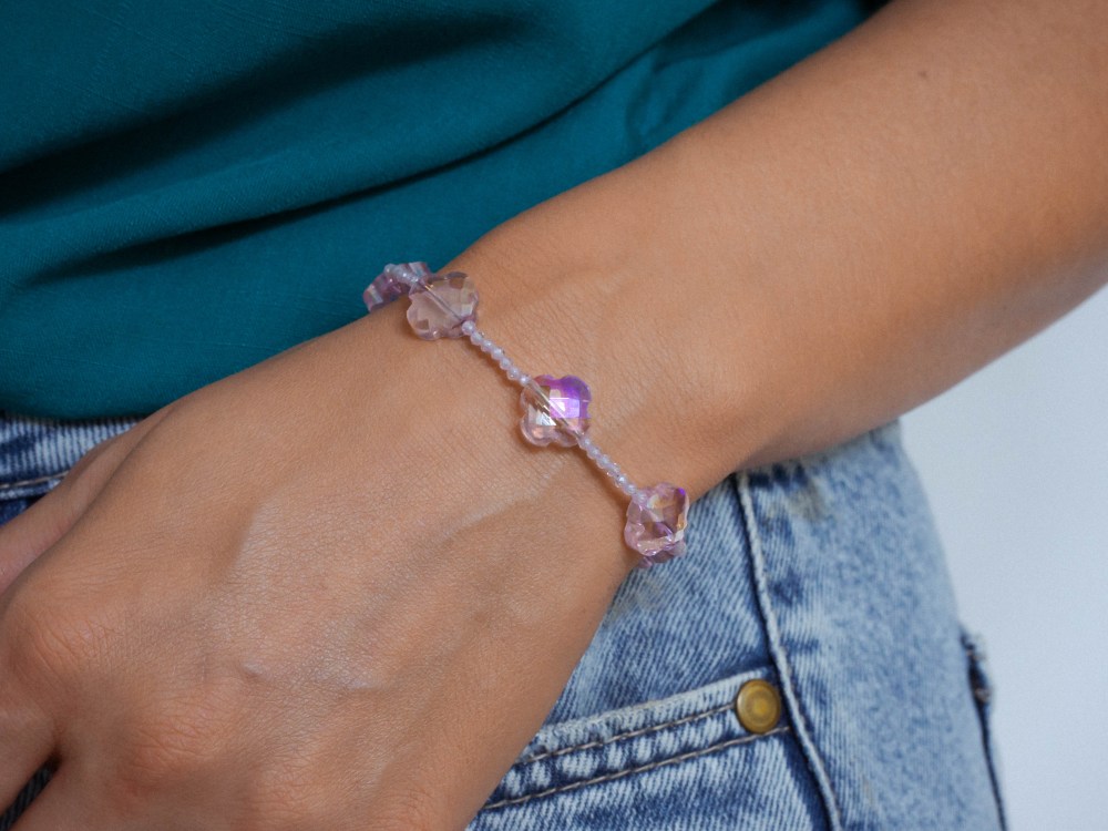 This Clover bracelet brings a touch of charm and elegance to any outfit. Designed with faceted clover-shaped beads and delicate accents, it’s a piece that feels both stylish and meaningful.