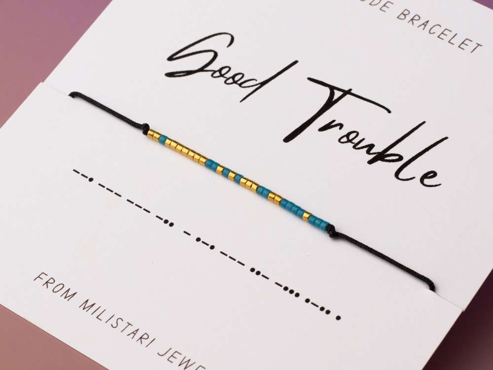 Whether you’re honoring someone who inspires you, or wearing it as your own quiet commitment to progress, the Good Trouble Morse code bracelet is a meaningful way to carry courage with you.